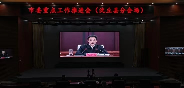 近日,沈丘县组织收听收看市委重点工作推进会。全县副处级以上领导干部和各乡镇(街道)党政正职、县直相关职能部门主要负责人在分会场共同收听收看。