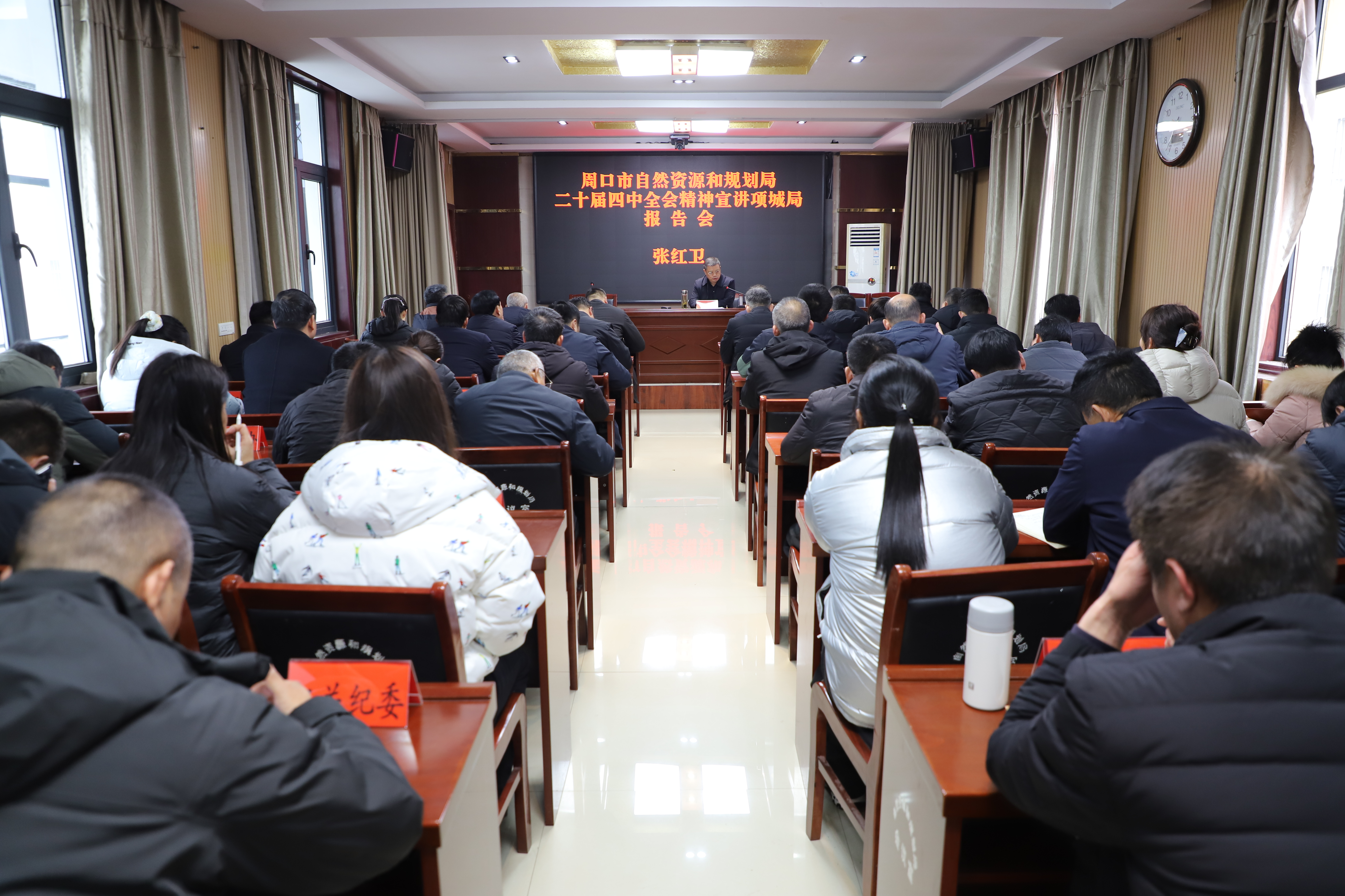 12月23日,周口市自然资源和规划局二级调研员张红卫到项城市自然资源和规划局开展党的二十届四中全会精神专题宣讲,项城市自然资源和规划局党组书记、局长齐栋梁主持会议,局领导班子成员,局机关各股室、二级机构负责人参加会议。