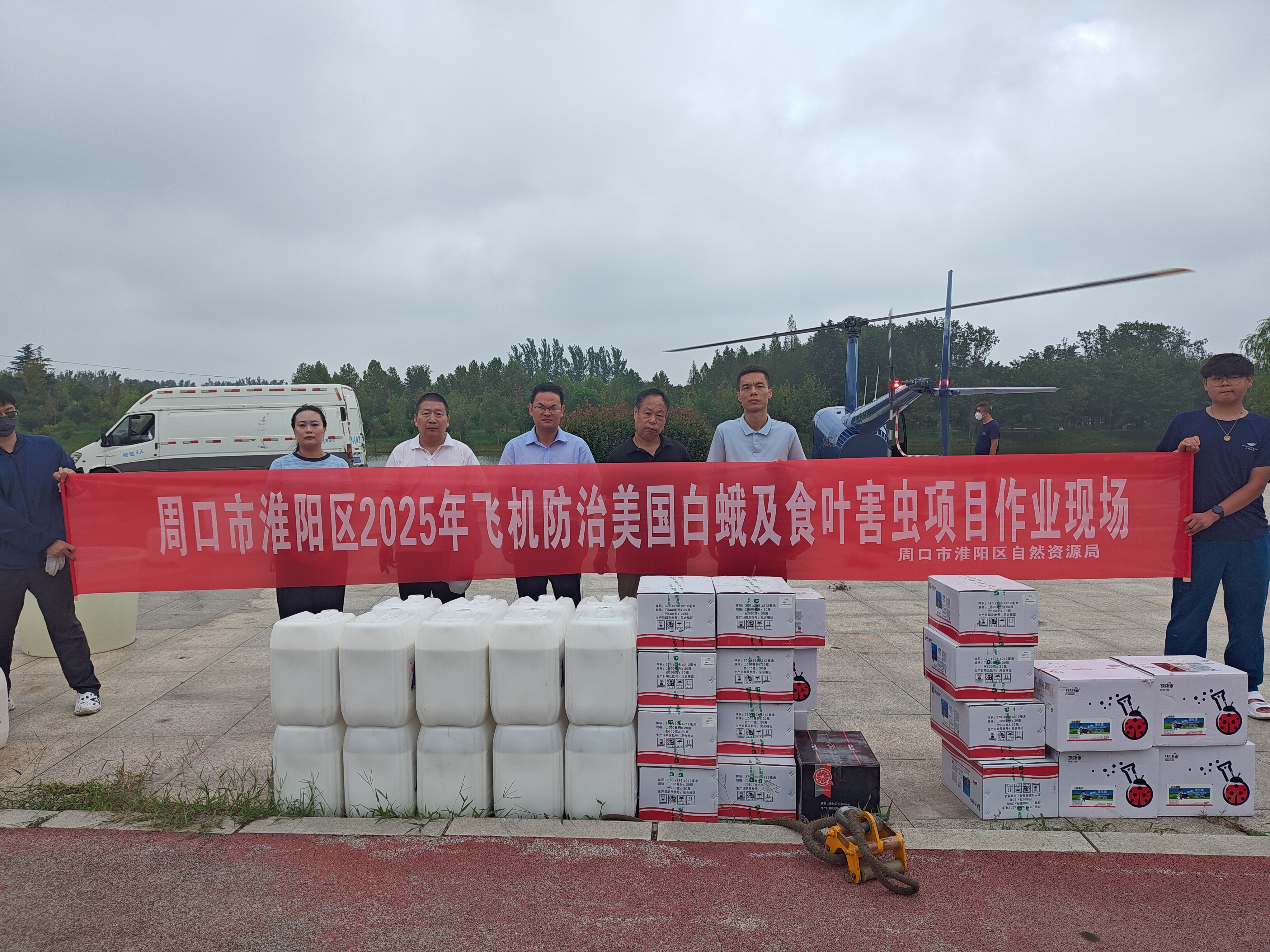 为有效防控美国白蛾及林业有害生物的扩散蔓延,切实保护淮阳区林业生态安全,近日,周口市淮阳区自然资源局积极组织开展2025年飞机防治美国白蛾及林业有害生物工作,全面打响了一场守护绿色家园的生态保卫战。