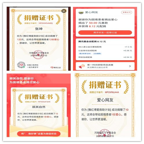 积沙成塔,重在参与。1元不少,10元不多,都是一份爱心!倡议发出后,局领导干部率先捐款,随后干部职工纷纷响应、积极参与。10元、20元、50元、100元......扫二维码完成捐款,为了保证捐款的真实有效,大家把捐款证书的截图都公示在了微信工作群里,持续解囊助力,用实际行动尽自己的一份心力。