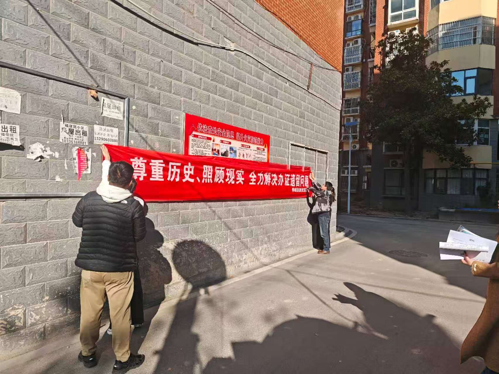 郸城县不动产登记中心组建了以党员业务骨干为核心的专项服务团队,下沉到涉及“登记难”问题各小区开展“零距离”便民服务,建立“每周两天驻小区”的固定服务机制,深入各小区现场办公。在小区醒目位置张贴清晰的办证通知,主动上门逐户走访,精准摸排办证意愿与实际困难。充分利用小区微信群、电话通知等多种渠道,详细告知群众便民服务点的位置、服务时间、所需材料清单以及办理流程等关键信息,提高知晓率。