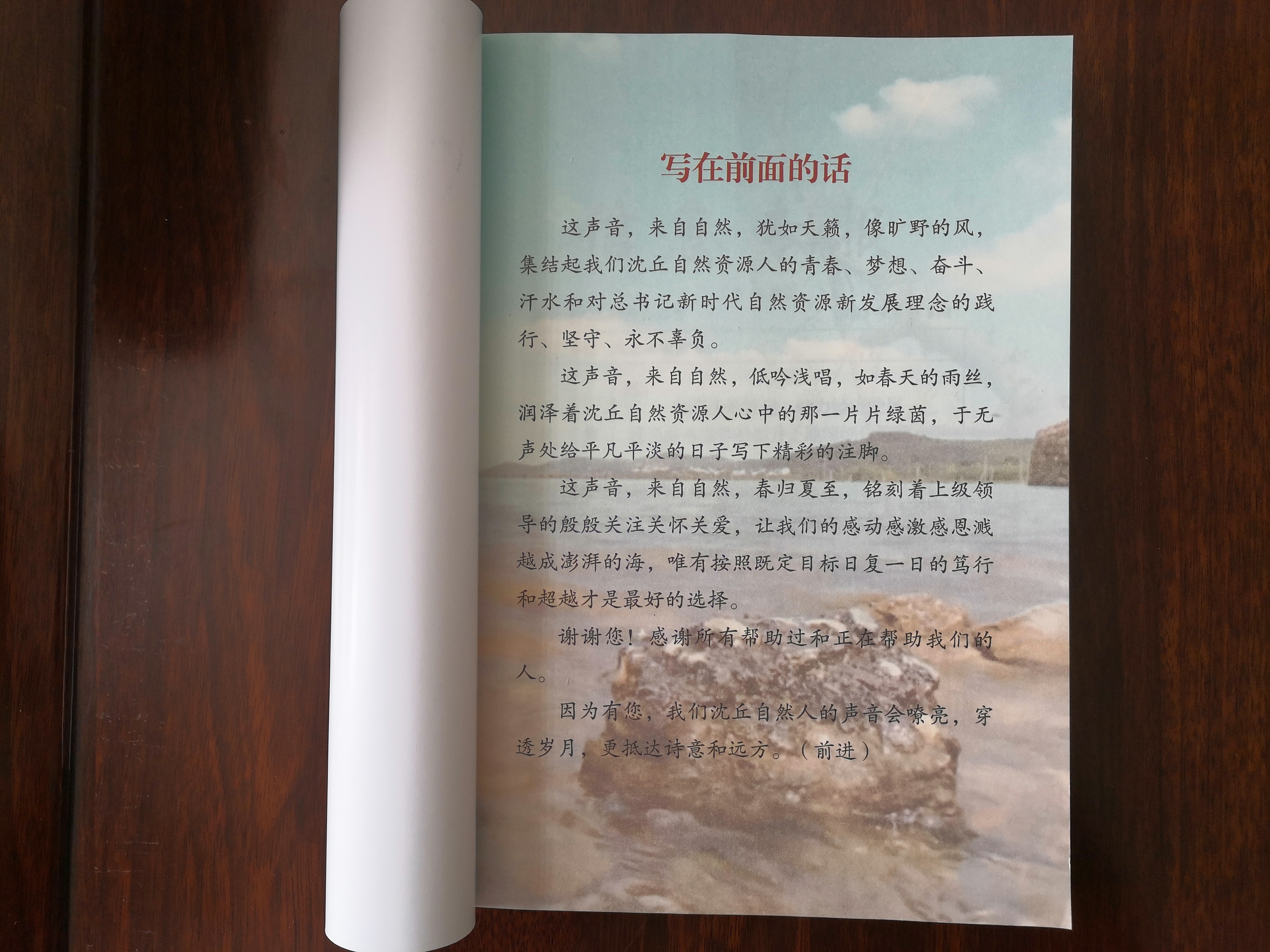 日前,沈丘县自然资源局将2023年上半年在媒体刊发的重点工作动态汇编为《来自自然的声音》。沈丘县自然资源局主要负责人为《来自自然的声音》写序,着力激发全体干部职工干事创业热情,进一步推动“书香机关”“清廉机关”同步建设。