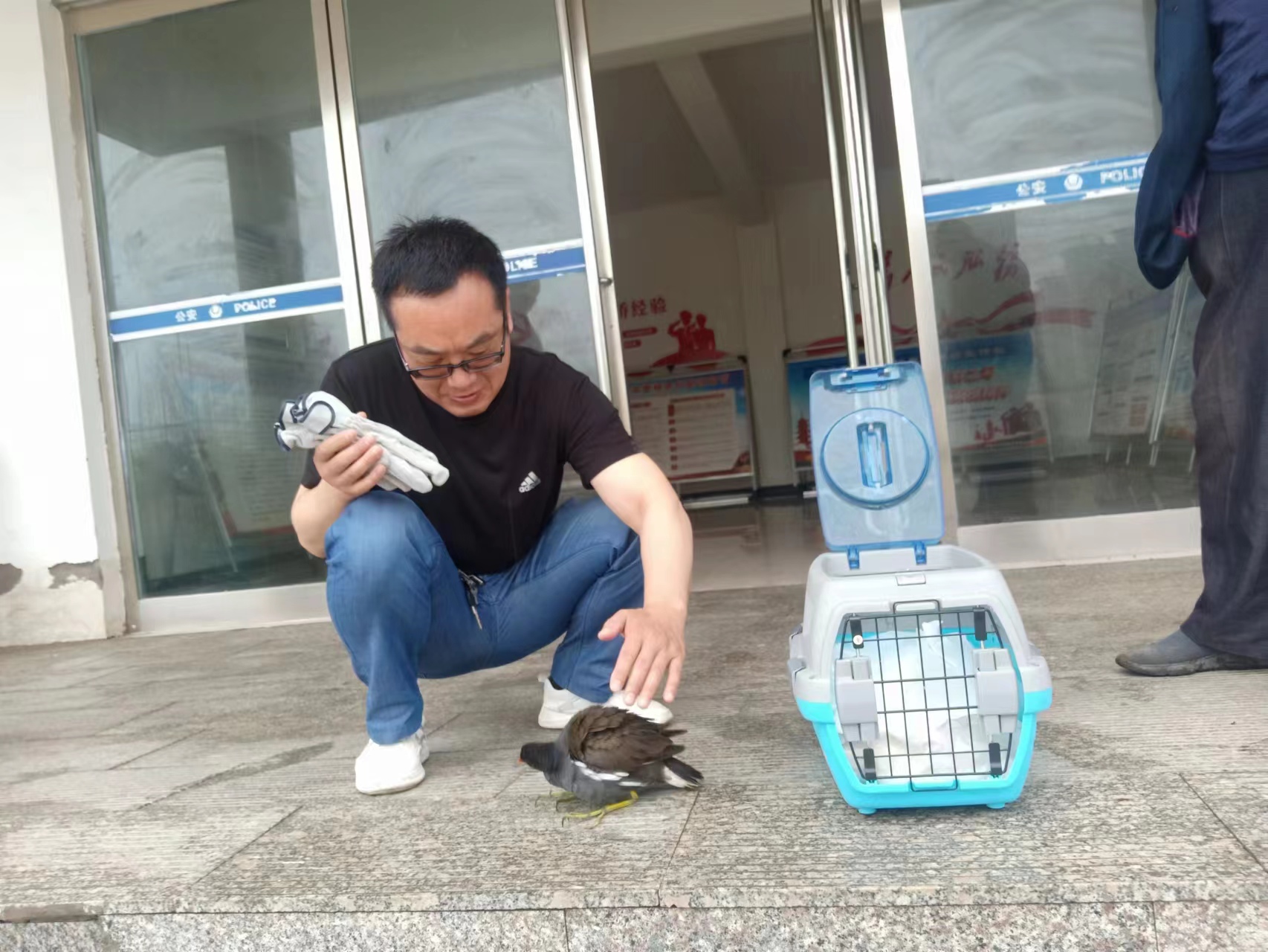 次日,在接到千佛阁派出所工作人员的联系电话后,自然资源和规划局野保股的工作人员带着救助箱,顶着淅沥小雨,赶到派出所现场接收了这只鸟,并把它及时送往周口市野生动物救护中心进行救治。经周口市野生动物救护中心检查鉴定,这只鸟是国家三有保护动物黑水鸡,该鸟可能是在觅食时被枯草或灌木弄伤了右眼,体质虚弱,需要在救助中心调养后方可放飞大自然。