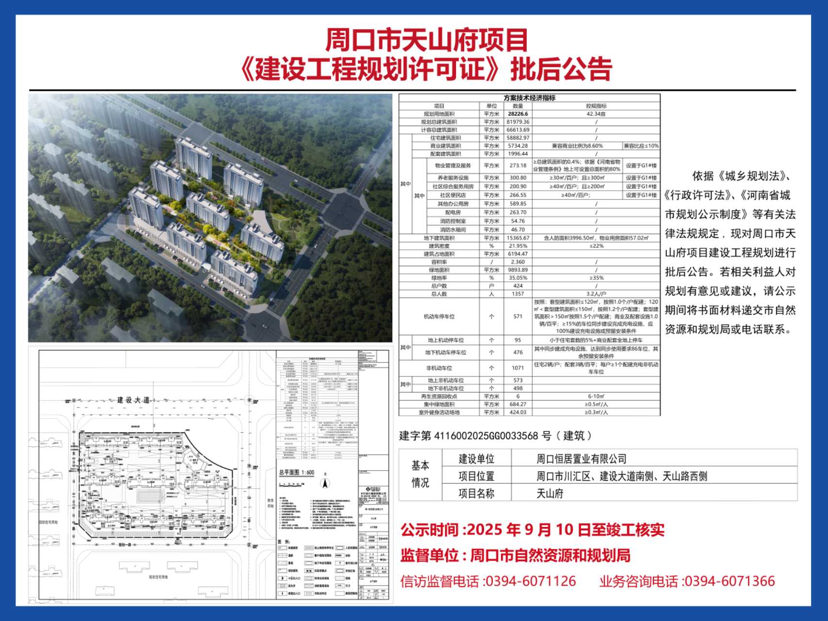 周口天山府项目建设工程规划许可证批后公告