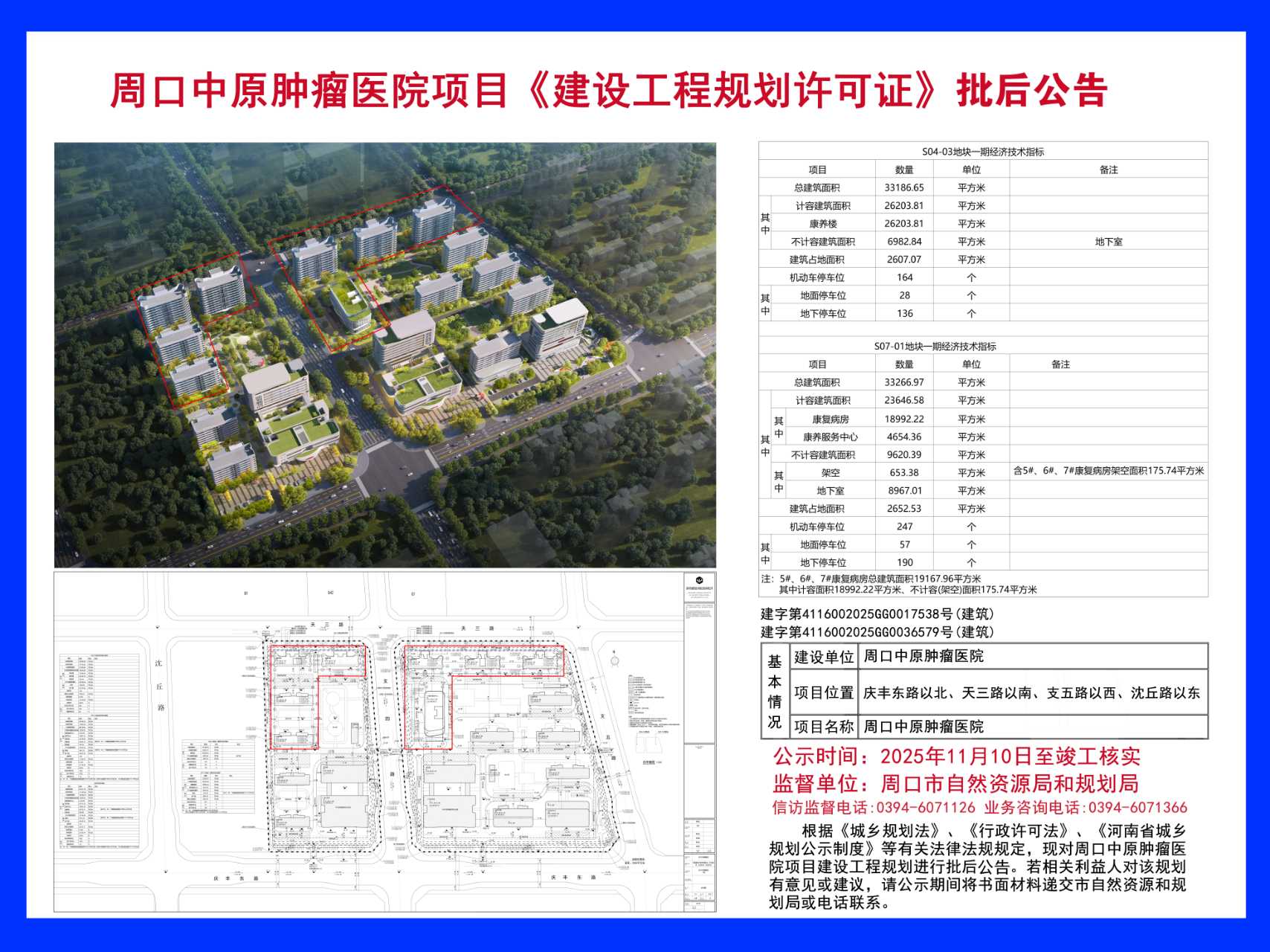 周口中原肿瘤医院建设工程规划许可证批后公告