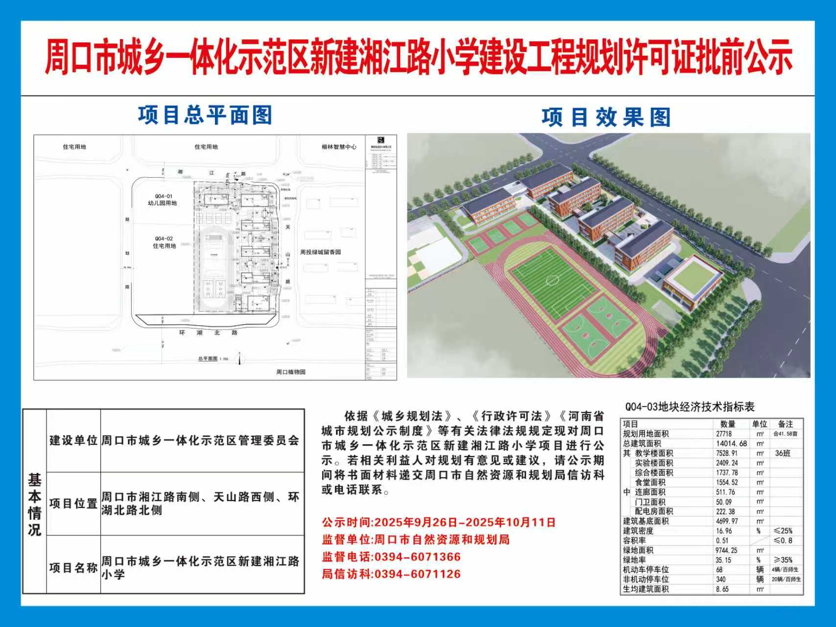 周口市示范区的湘江路小学建设工程规划许可证批前公示