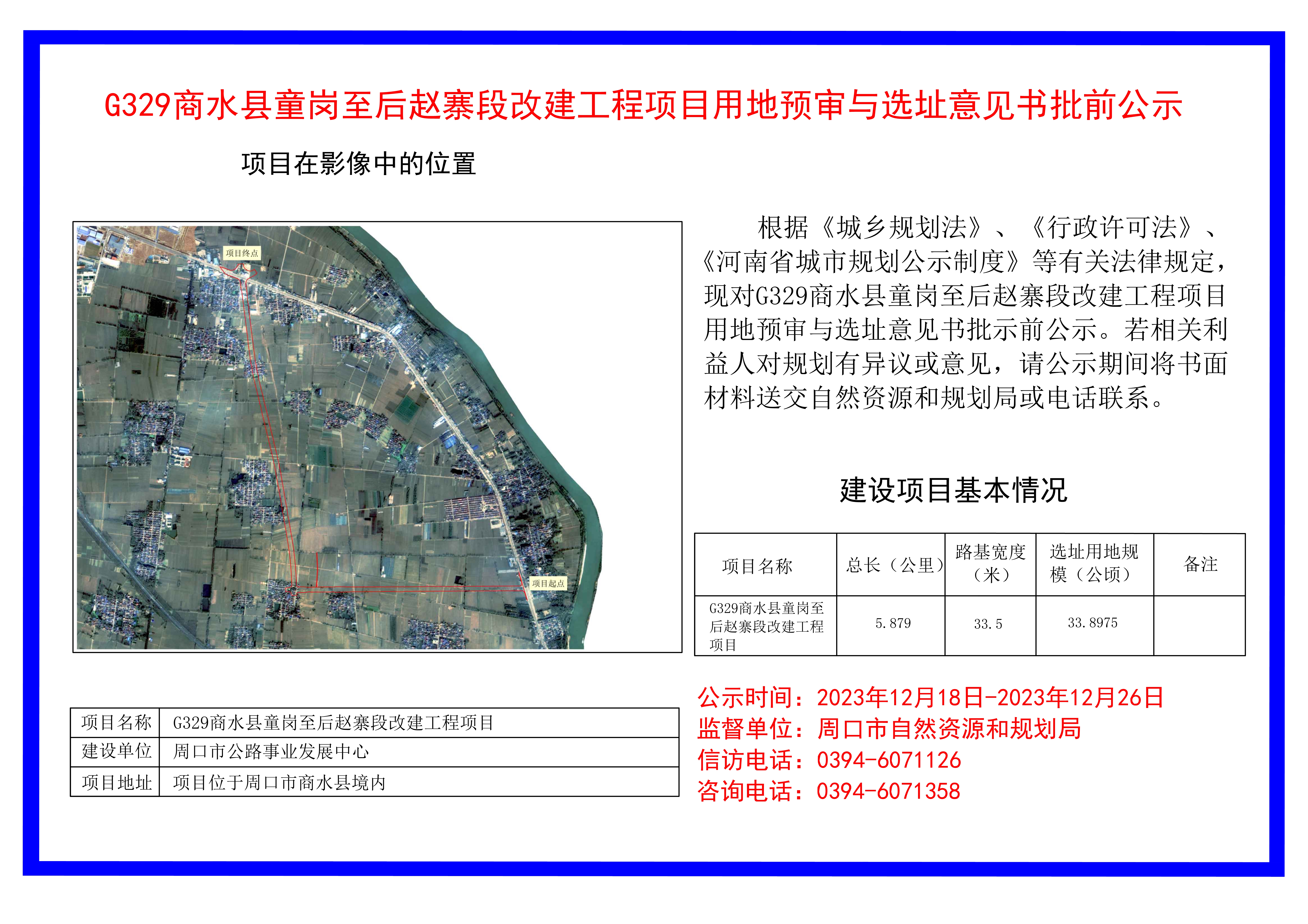 G329商水县童岗至后赵寨段改建工程项目用地预审与选址意见书批前公示