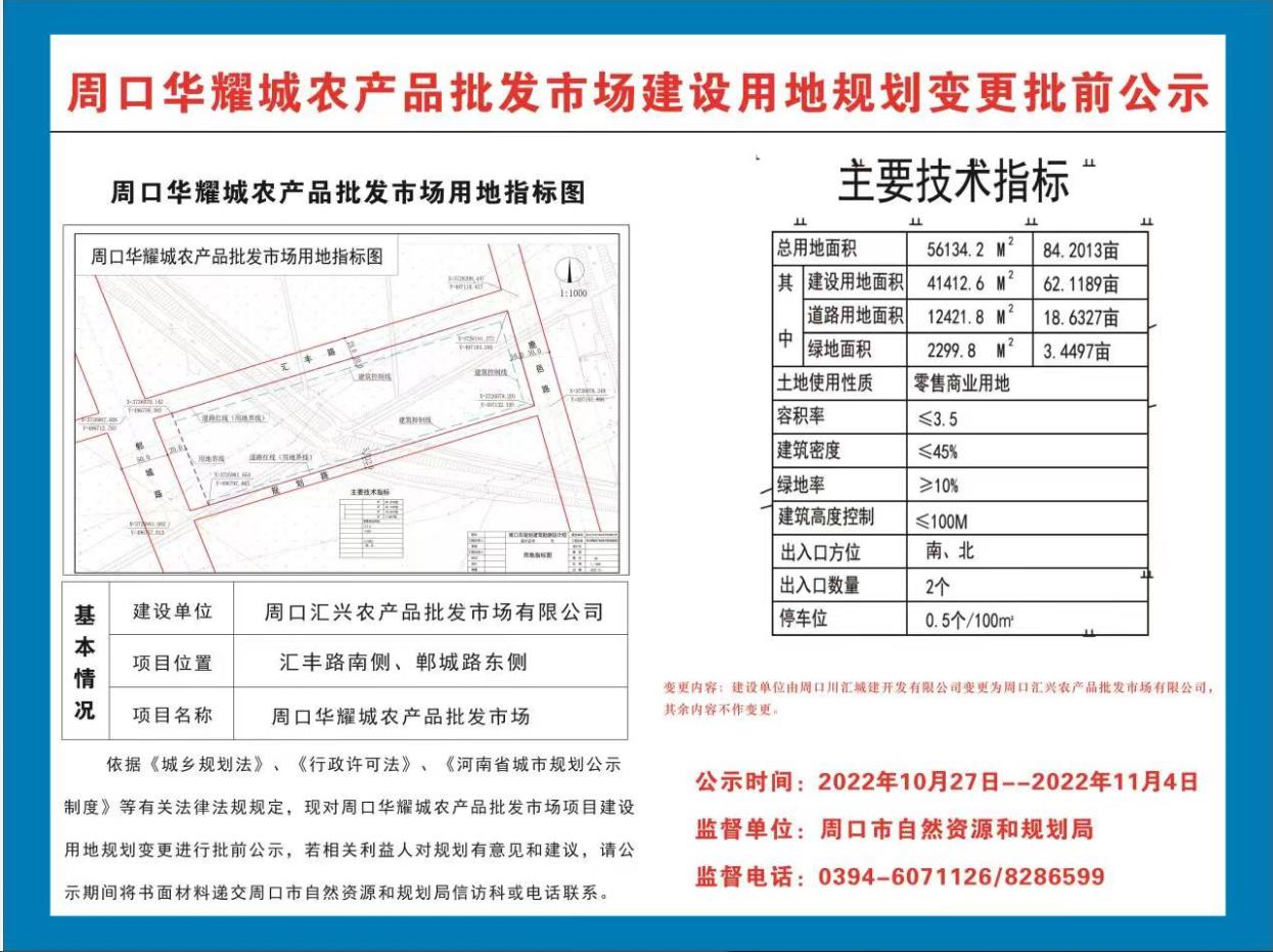 周口华耀城农产品批发市场建设用地变更批前公示