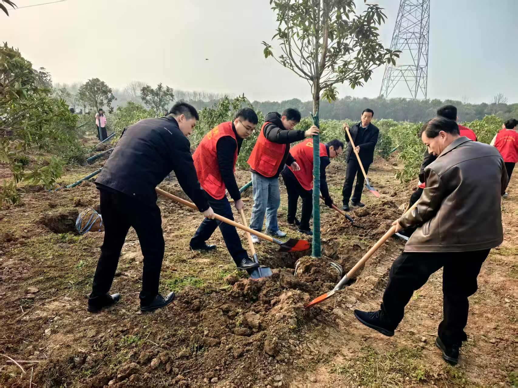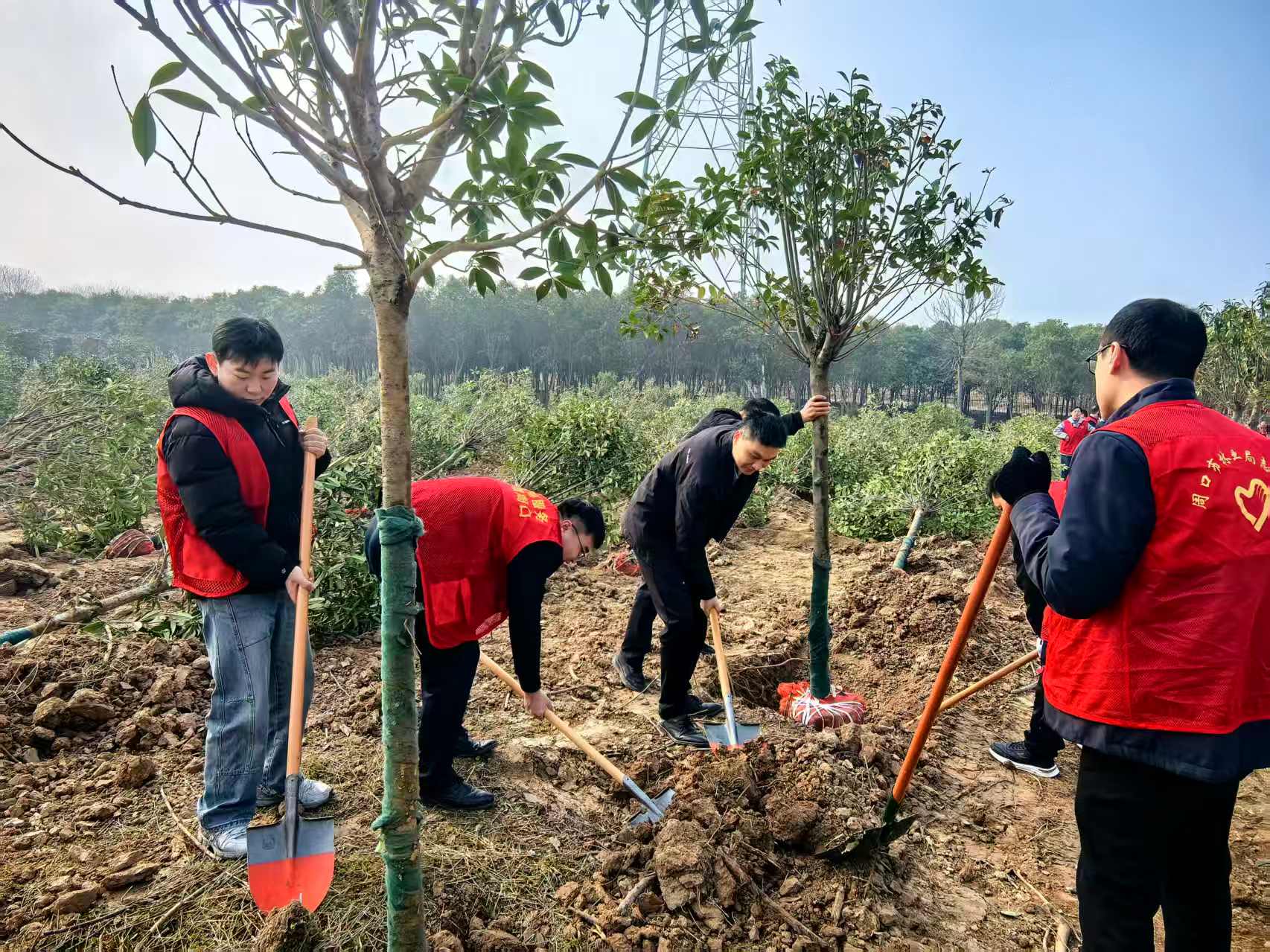植树现场,党组成员、副局长刘林带头示范,与干部职工并肩作战,形成了“领导带头、全员参与、上下同心、实干争先”的良好氛围。大家分工明确、配合默契,挥锹挖坑、扶苗培土、围堰浇水、踩实加固,每一道工序都一丝不苟、精益求精,每一个动作都饱含热情、凝聚力量。现场一派热火朝天、生机盎然的劳动景象,每一棵新栽的苗木都承载着大家守护生态、共建美好家园的殷切期盼。