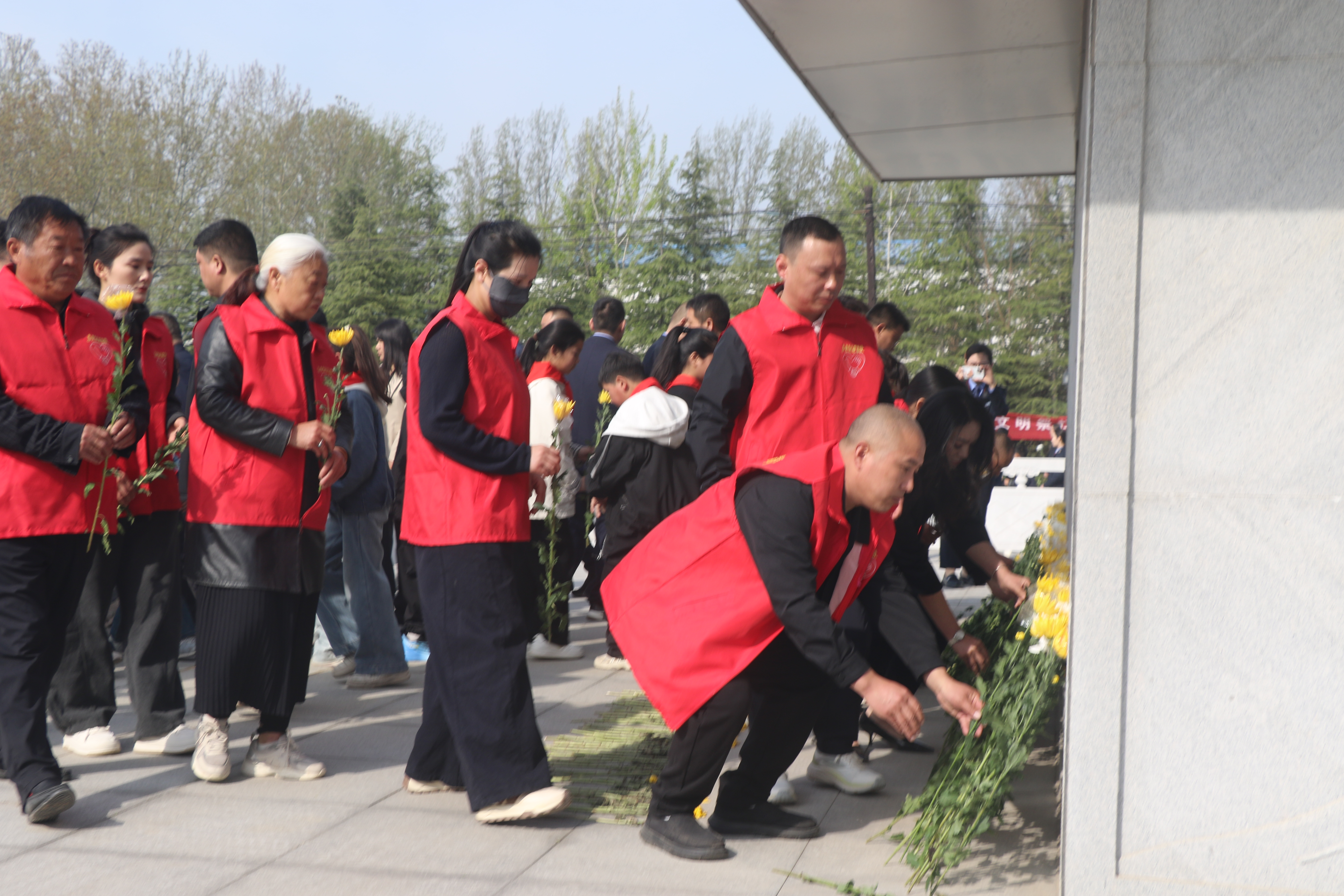 上午9时,全体人员在陵园广场庄严肃立,奏唱中华人民共和国国歌,少先队员齐唱队歌,并向革命烈士纪念碑敬献花篮、鞠躬致敬。全体人员依次敬献鲜花,寄托对英烈的无限哀思,深情追思革命先烈的崇高精神与不朽功勋。