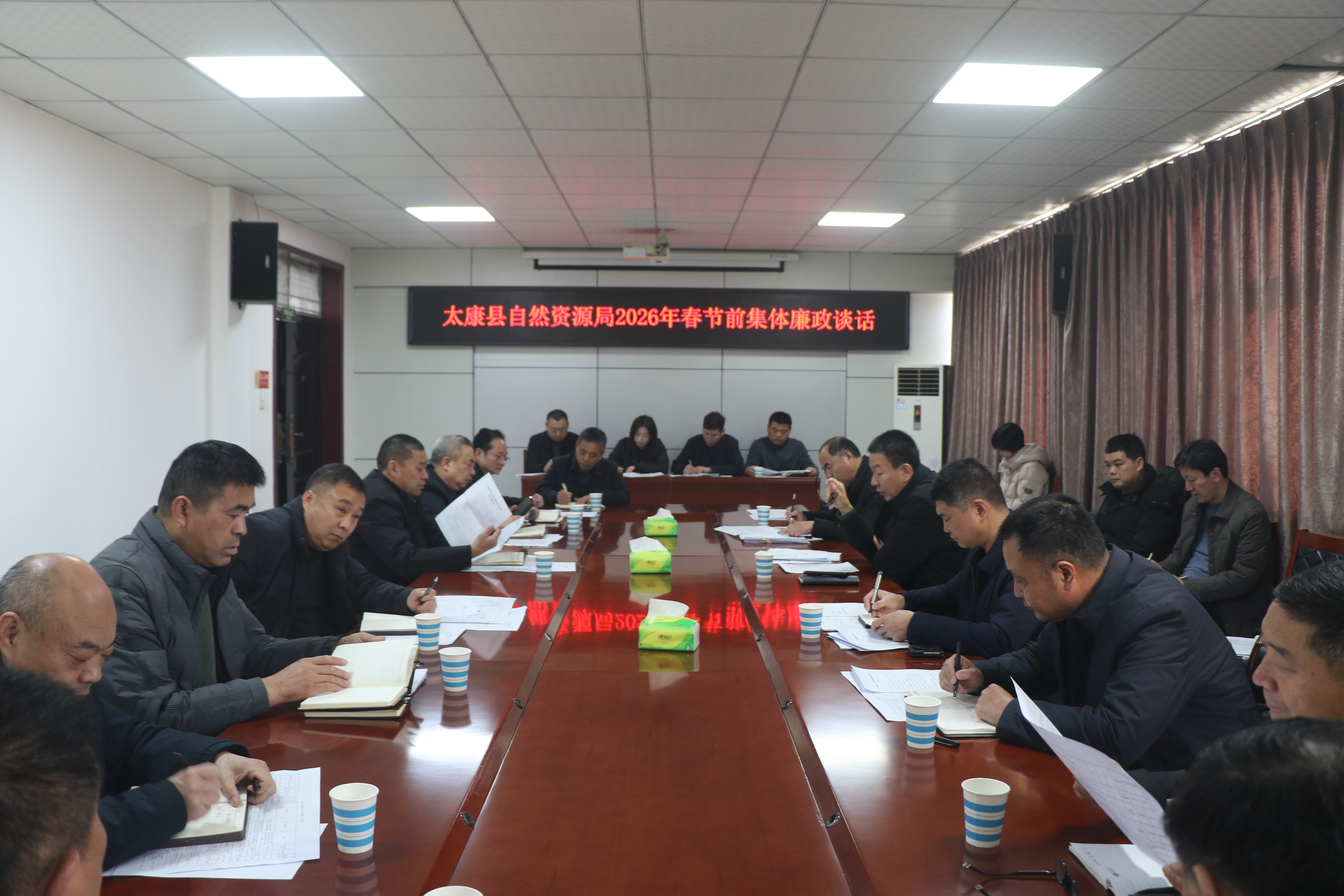 春节将至,年味渐浓。2月12日,太康县自然资源局举办节前集体廉政谈话提醒活动,由局党组书记、局长程中原对领导班子成员开展集体廉政谈话提醒,打好廉洁自律“预防针”,增强“免疫力”,严防“节日病”,营造风清气正的节日氛围。