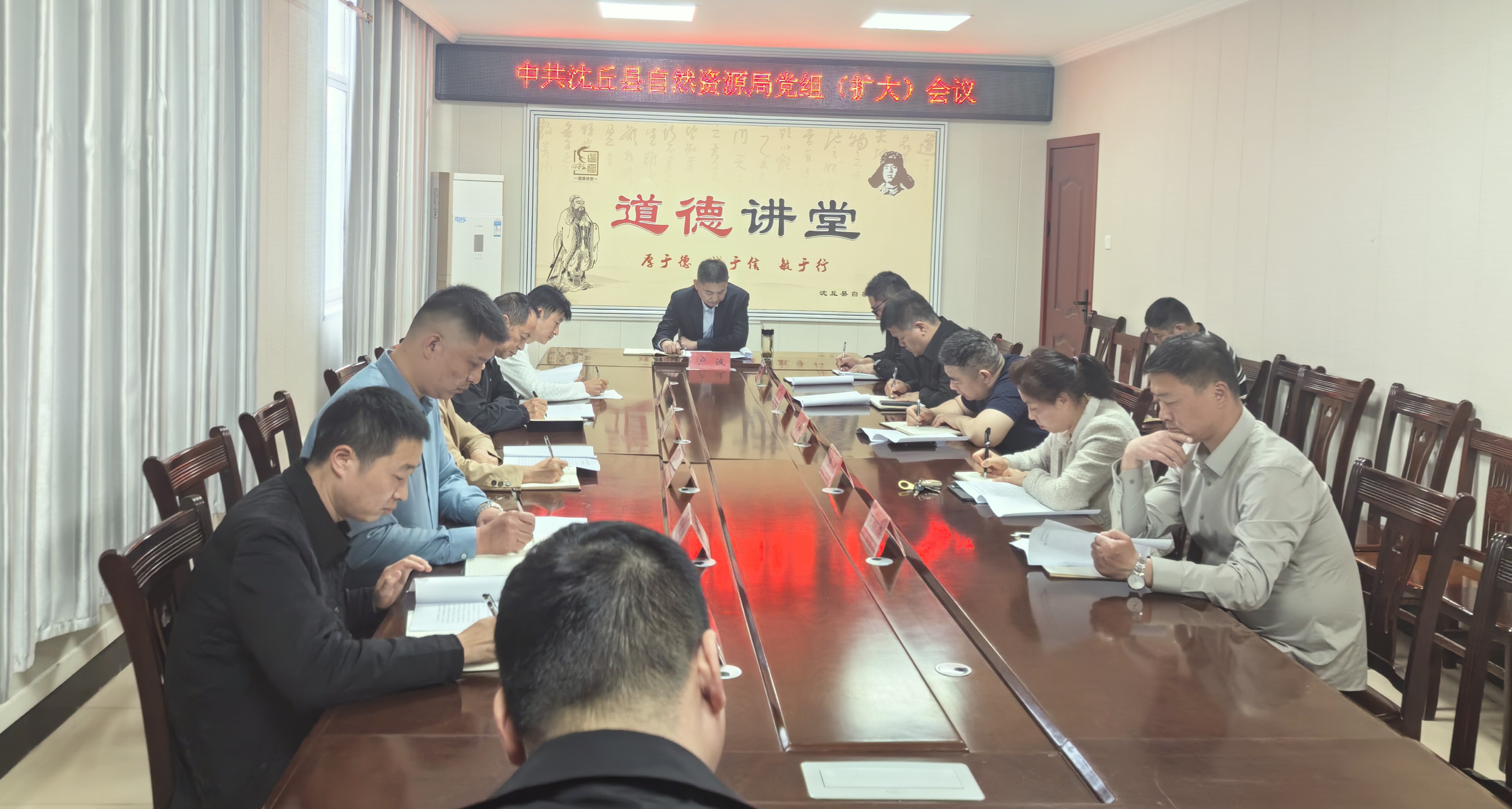 4月10日,沈丘县自然资源局召开党组扩大会议,专题学习贯彻上级重要文件精神,全面分析当前工作形势,研究部署下一步重点工作任务。局领导班子成员、各相关股室负责人参加会议。