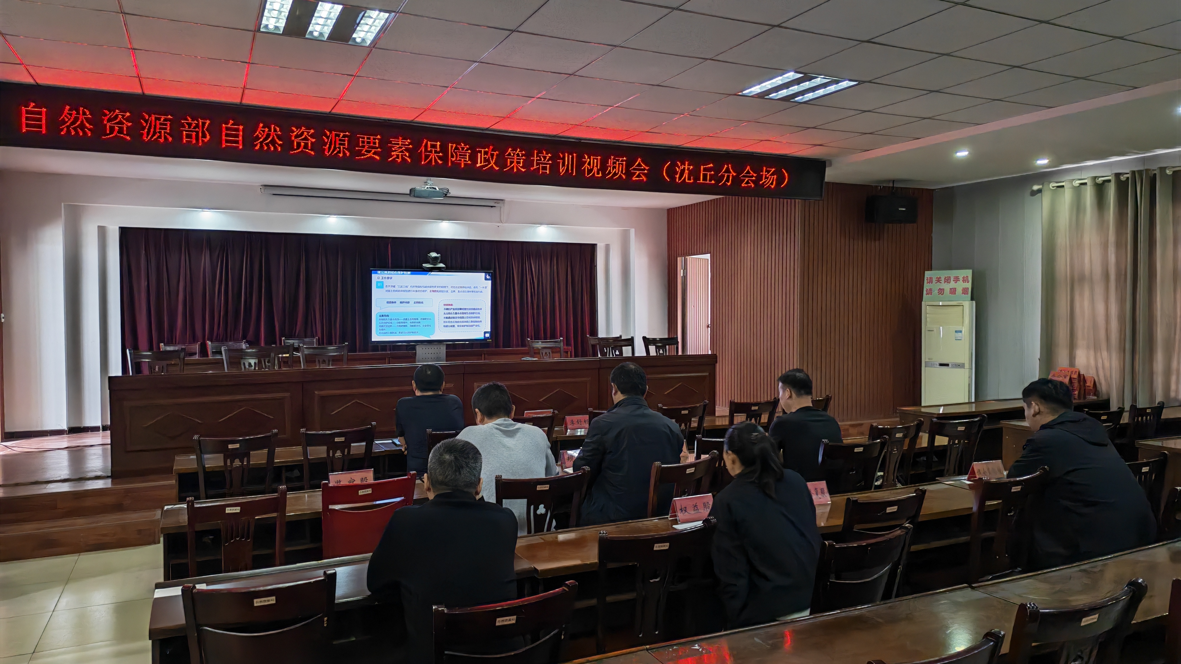 近日,自然资源部举办自然资源要素保障政策视频培训。沈丘县自然资源局在县级分会场组织相关领导及业务骨干集中收听收看培训直播,精准学习领会最新政策精神,切实提升自然资源要素保障履职能力。