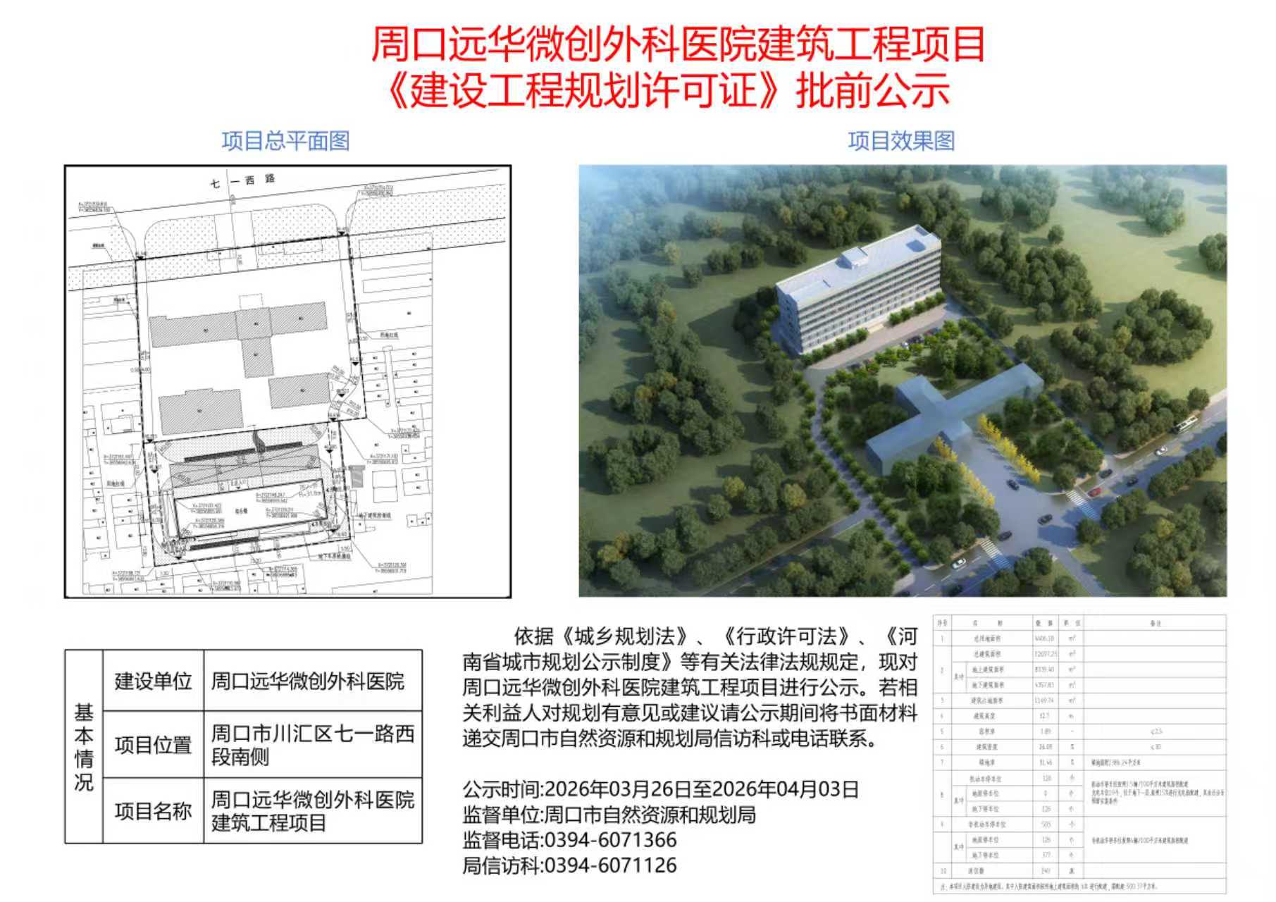 周口远华微创外科医院项目建设工程规划许可证批前公示